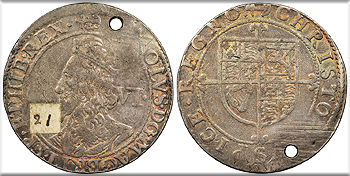 S. 2860 VF. Nicely toned. Pierced. Small tag with collection number '21' adhered to obverse.