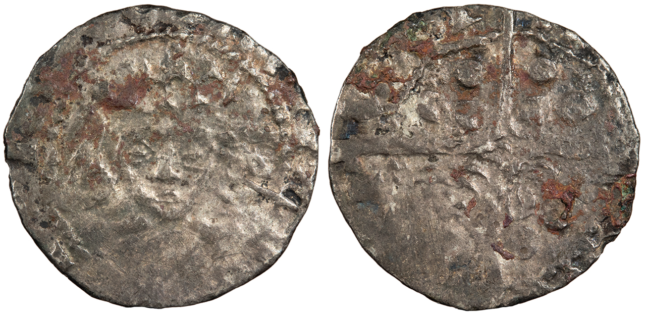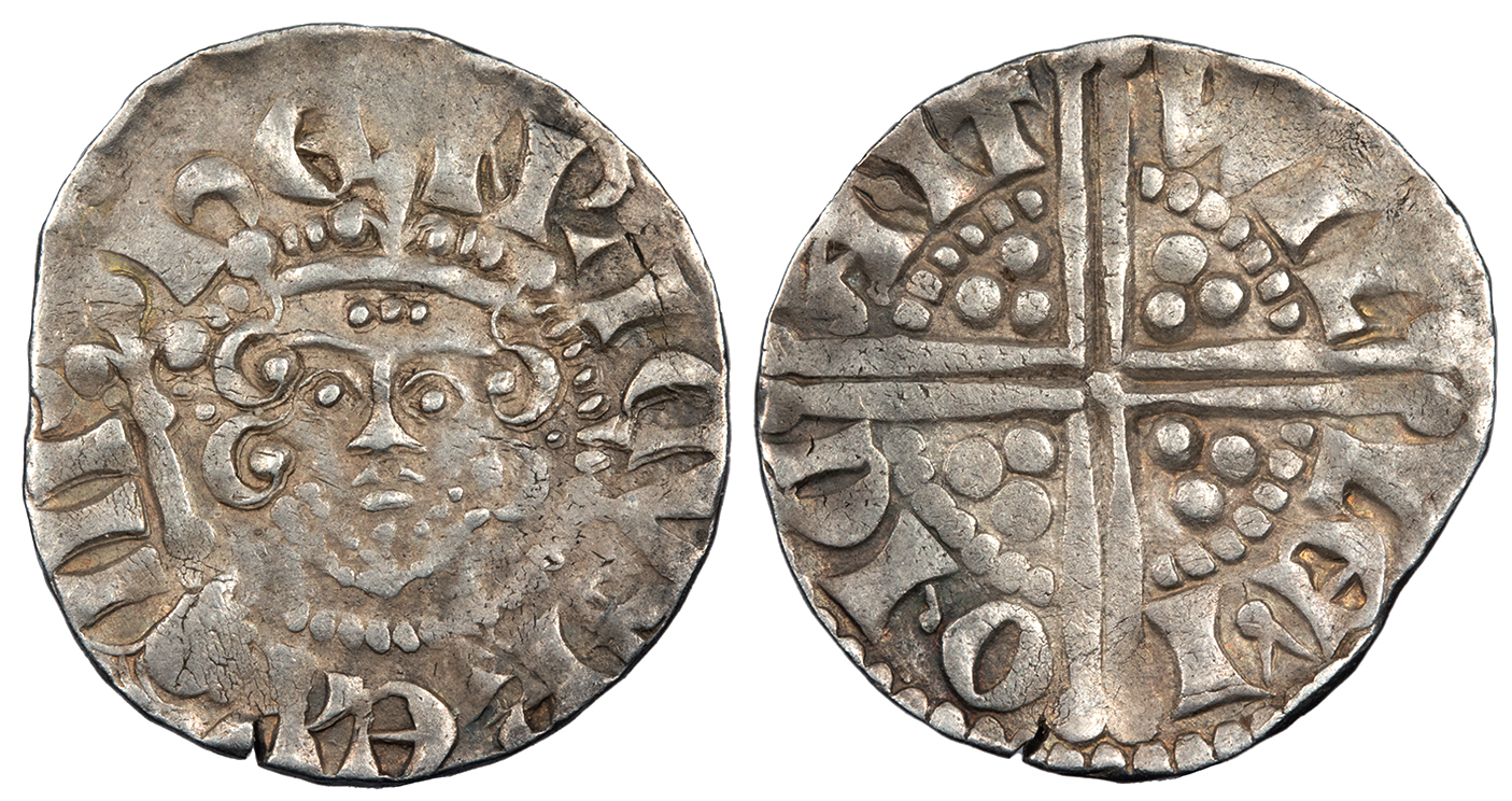 AR Penny 18mm. 1.53g. Canterbury Mint. Moneyer Willem. Crowned head facing within circle; sceptre at left hENRICVS REX -III voided long-cross pommée, quartered with pellet trefoils; pellet at center. WIL -LEM -ON C -ANT S. 1369 VF. Lightly toned. Minor flan flaws.