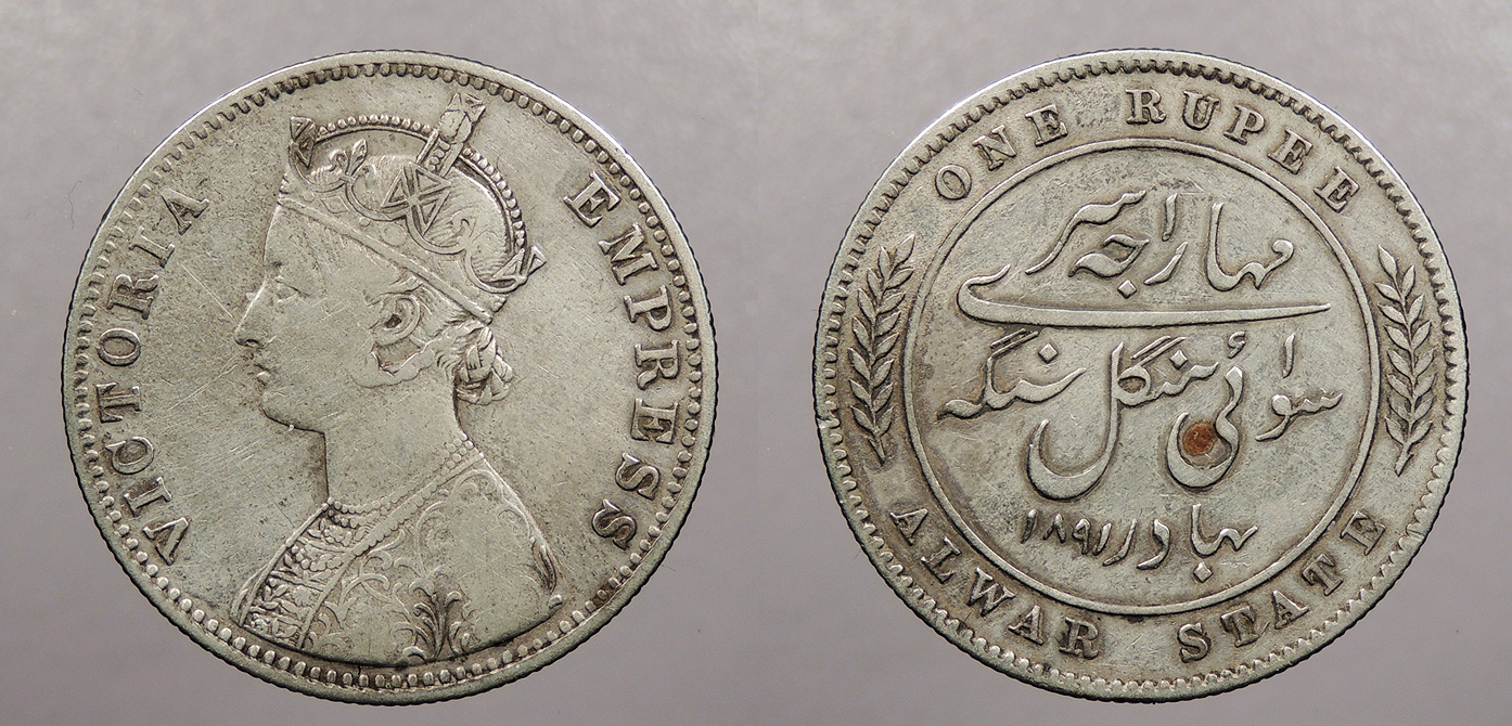 INDIAN PRINCELY STATES Alwar 1891 Victoria Rupee -- #:WC107899