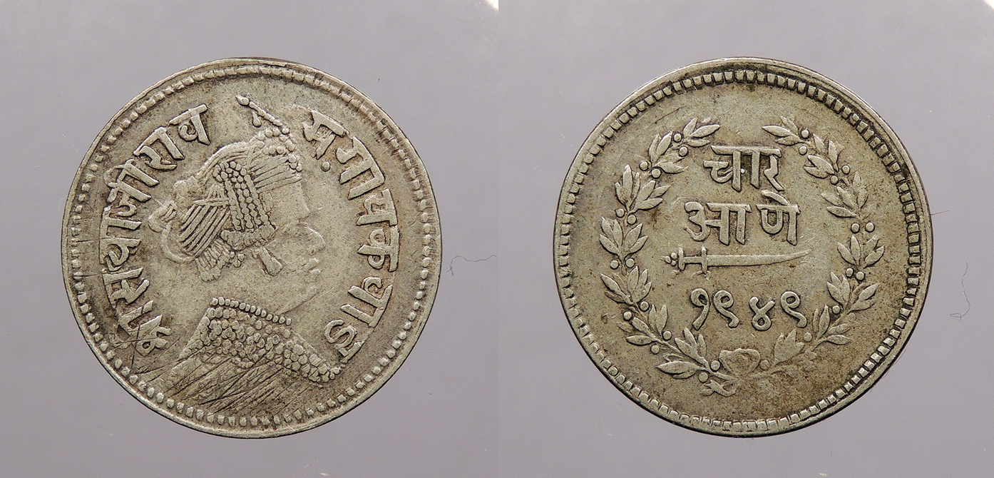 INDIAN PRINCELY STATES Baroda VS 1949 (1892) One Year Type 4 Annas -- #:WC107914