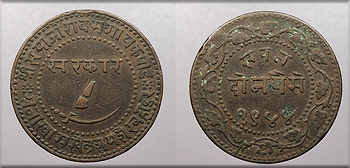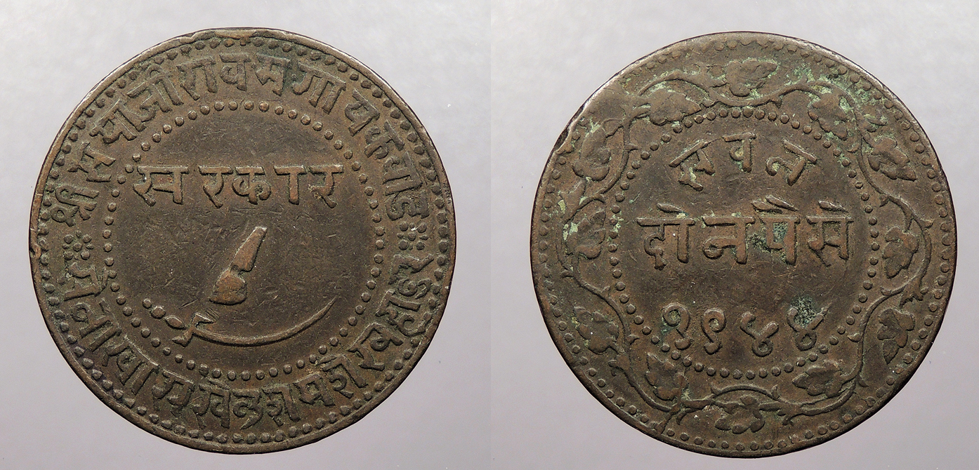 INDIAN PRINCELY STATES Baroda VS 1948 (1891) 13.47 gm 2 Paisa -- #:WC104818