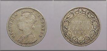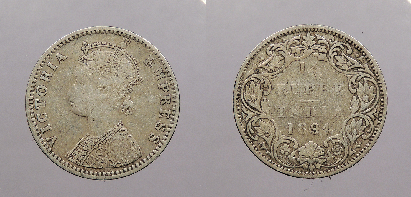 INDIA British Colonial 1894-B Victoria 1/4 Rupee -- #:WC107904