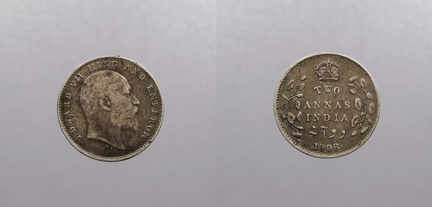 INDIA British Colonial 1908 (c) Edward VII 2 Annas -- #:WC108369