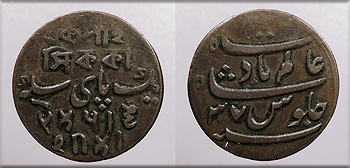 INDIA British East India Company Bengal Presidency Shah Alam II RY37 frozen date (1815-1829) Pice -- #:WC95696