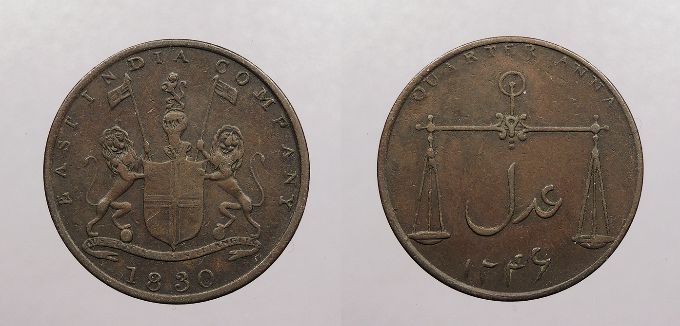 INDIA Bombay Presidency AH 1246 / 1830 1/4 Anna -- #:WC107893