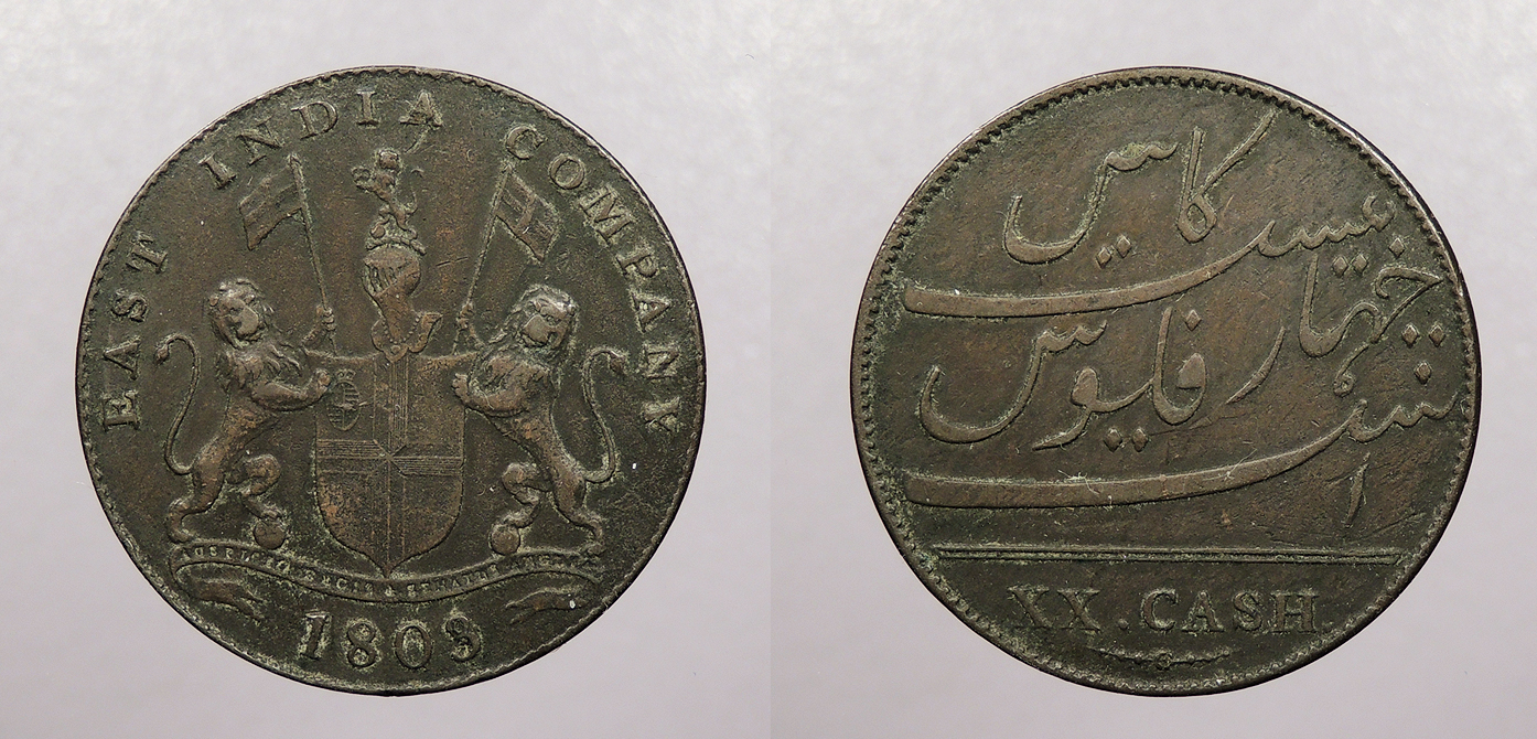 INDIA East India Co. British Colonial 1803 20 Cash -- #:WC107888