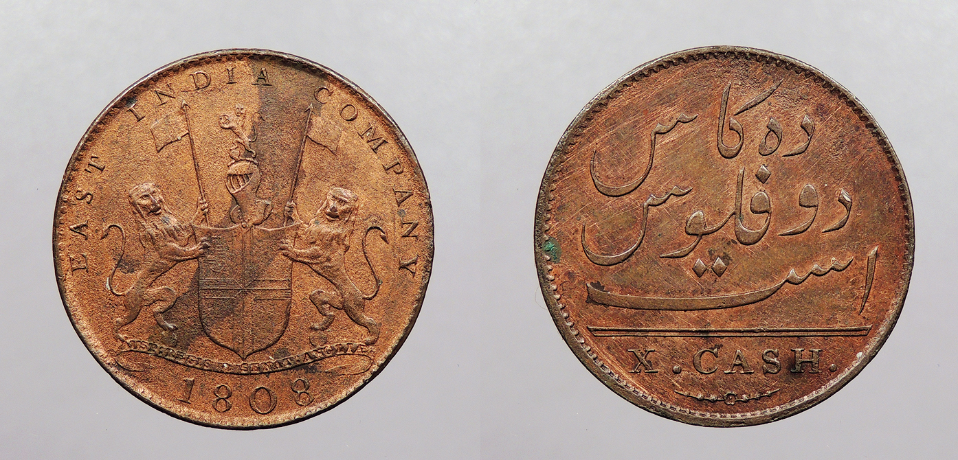INDIA East India Co. Madras Presidency 1808 Ex Admiral Gardner shipwreck? 10 Cash -- #:WC107889
