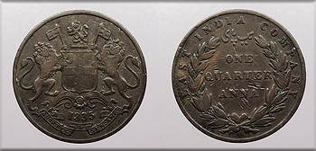INDIA East India Co. British 1858 1/4 Anna -- #:WC98733