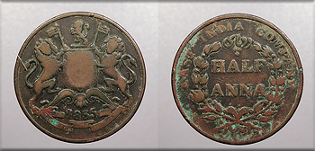 INDIA East India Co. British 1835 (b) 1/2 Anna -- #:WC98735