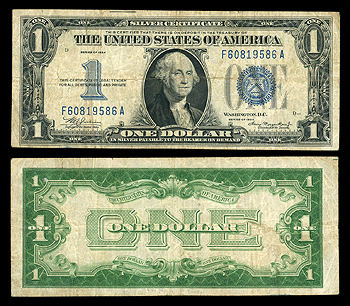 Small Size Silver Certificate; 'Funny back' 1 Dollar Bust of George Washington.