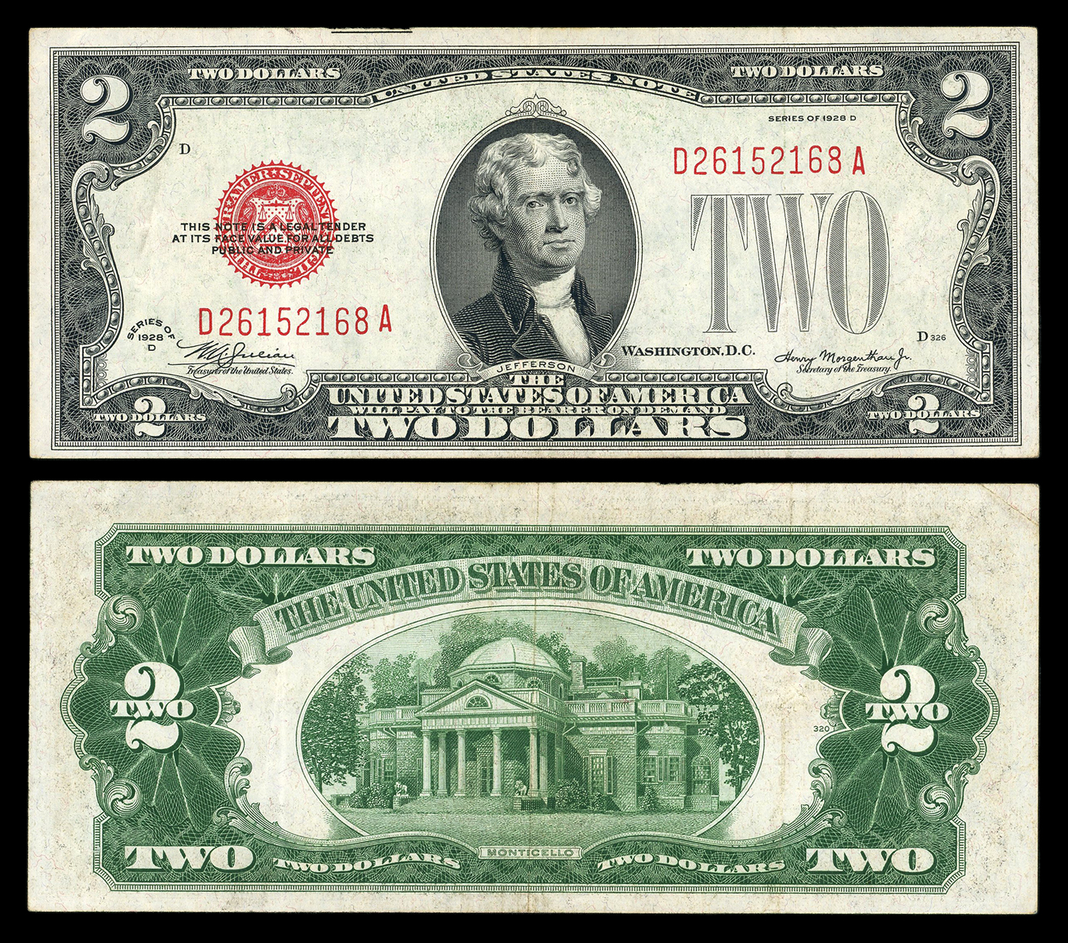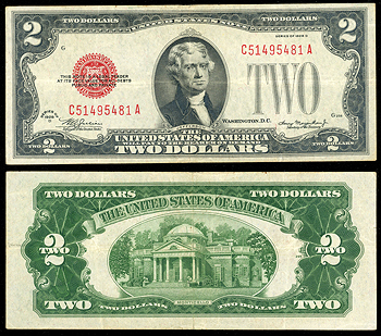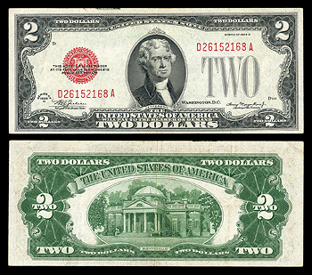 Small Size Legal Tender 2 Dollars Thomas Jefferson.