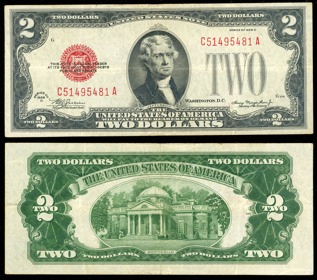 UNITED STATES OF AMERICA - United States Treasury 1928-D 2 Dollars VF+ -- #CU103787