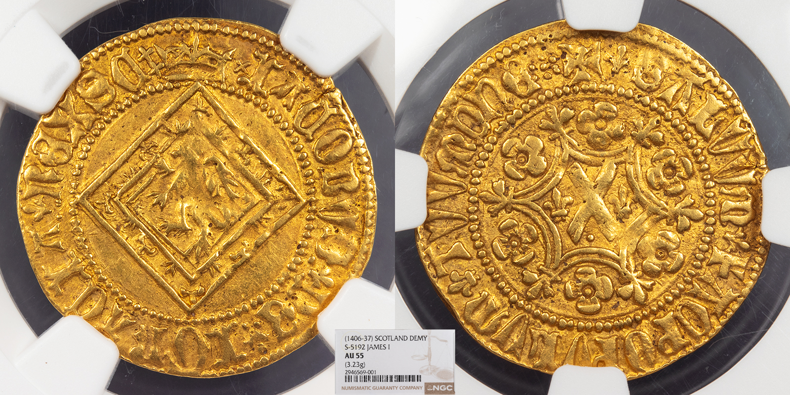 SCOTLAND James I 1406-1437 1/2 Lion (Demy) NGC AU-55 -- #ME106689