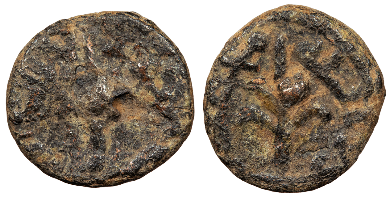 Album A161 Fine. Rare. Dark green-brown patina with some tan earthen fill. Some roughness, as typical, but especially on obverse. A rare and enigmatic post-reform issue, undated and with no mint, but attributed to Palestine.