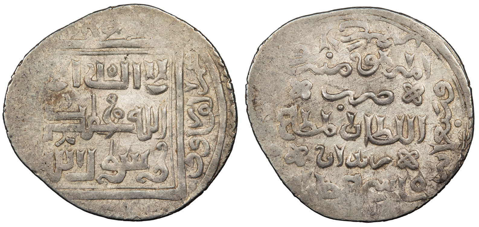 Album 2282.7 VF. Lightly toned with lustrous fields. A bit unevenly struck, as typical. The Muzaffarids came to power after the breakup of the Ilkhanate, controling most of central Persia until 1393.