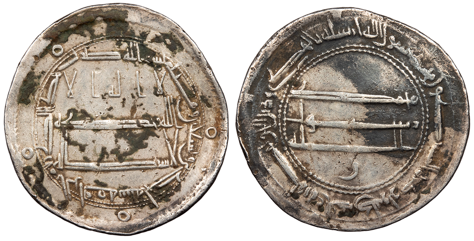 Album 219.2 VF. Scarcer mint. Toned with hints of lustre at margins. Some dark stained patches. Wavy. Lightly hairlined. Struck anonymously, without the name of a caliph or governor. Seemingly scarcer date for this mint.