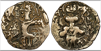 Stylized Enthroned Ardoksho, Brahmi legend to r.(?)