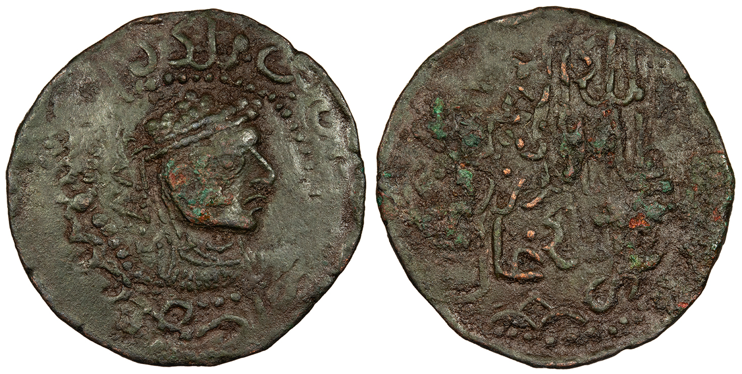 Album 2344.2 VF. Rare mint for the type. Toned with some lustre in recesses. Struck unevenly and off center, as typical. Faint hairlines. Some green adhesions. The only ruler of the Shi'ite state of Astarabad who issued coinage was Amir Wali, though his coins are always anonymous. This coin features a Sunni reverse despite Wali being an adherent of the Shi'ite belief.