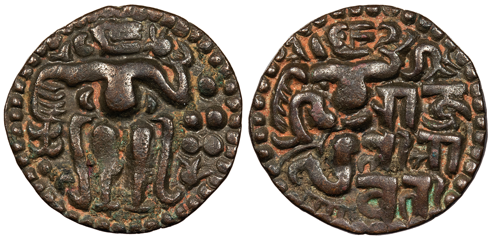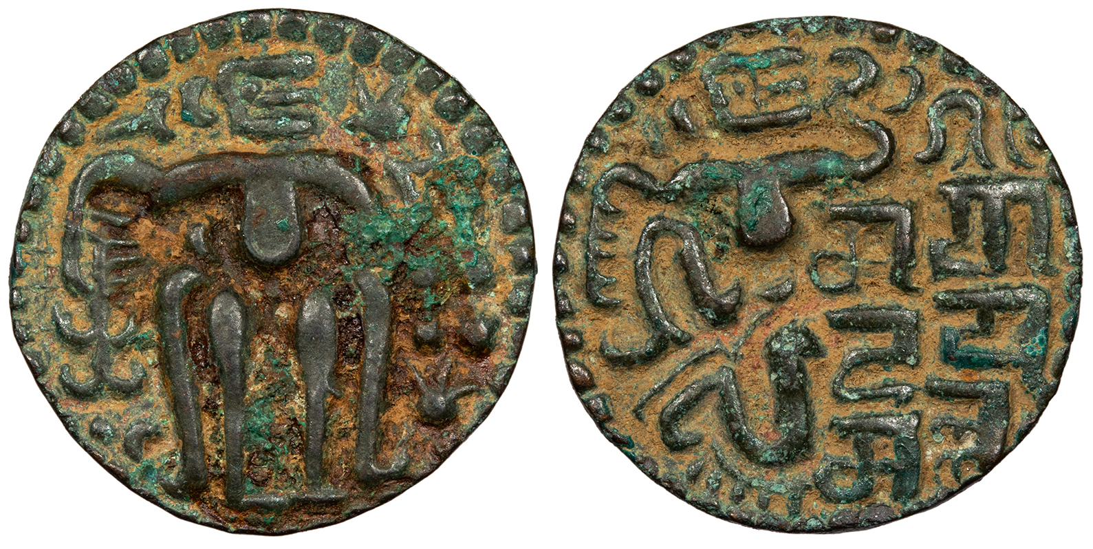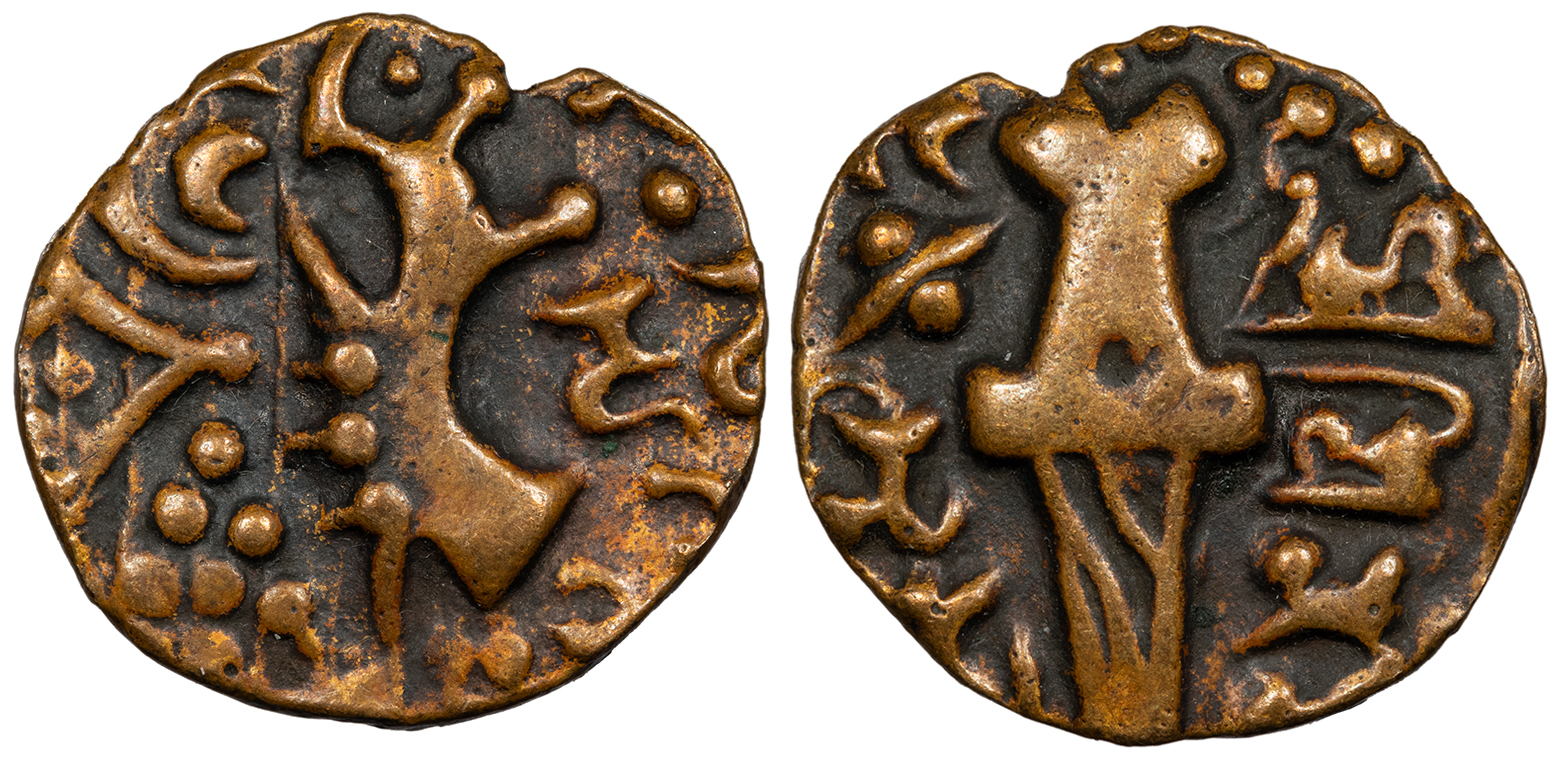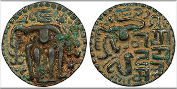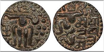 SRI RAJA LILAVATI (in Brahmi) King seated front, head r., holding uncertain object in his l. hand.
