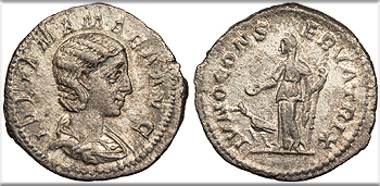 Julia Maesa, grandmother of Elagabalus 218-222 A.D. Denarius Good VF -- #AC106716