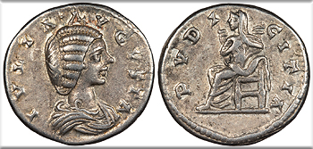 Julia Mamaea, mother of Severus Alexander 222-235 A.D. Denarius Good VF -- #AC106707