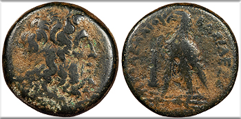 AE Obol 20mm. 6.84g. Alexandria Mint Laureate head of Zeus, r.