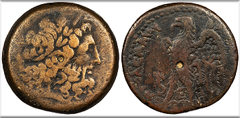 AE Obol 30mm. 23.16g. Alexandria Mint Laureate head of Zeus, r.