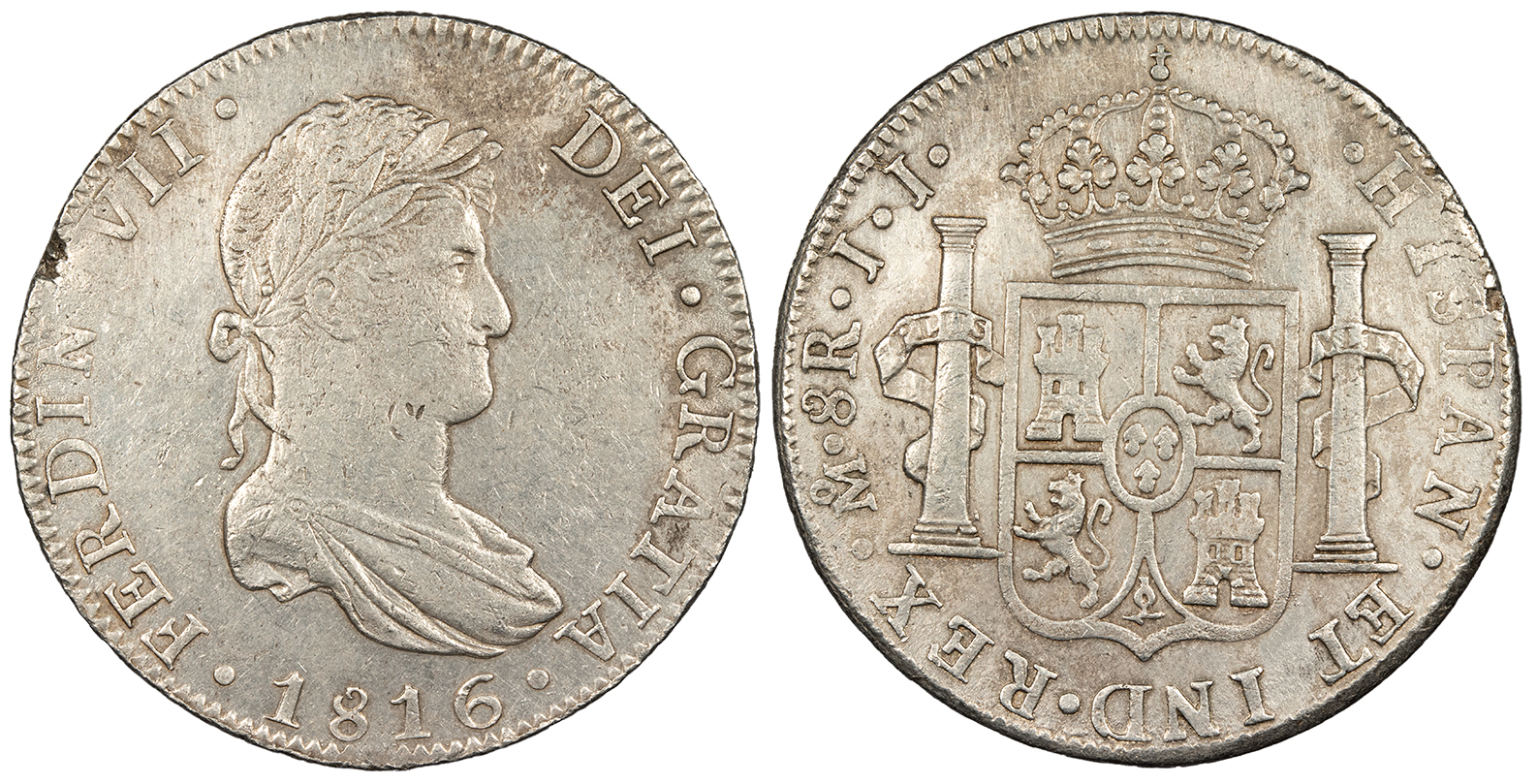 MEXICO Spanish Colonial Ferdinand (Fernando) VII 1816-Mo JJ 8 Reales AU -- #WC101795