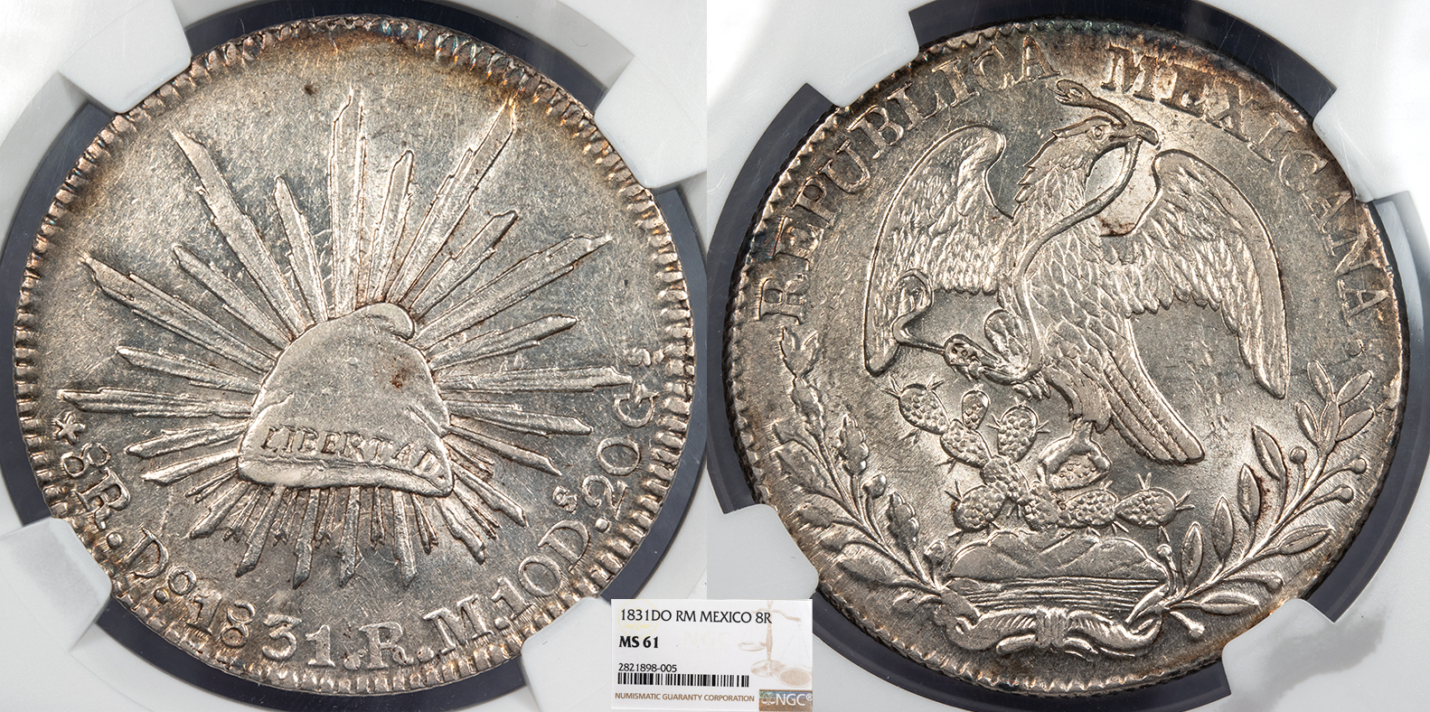 MEXICO Republic 1831-Do RM 'B' on Eagle's claw 8 Reales NGC MS-61 -- #WC101985