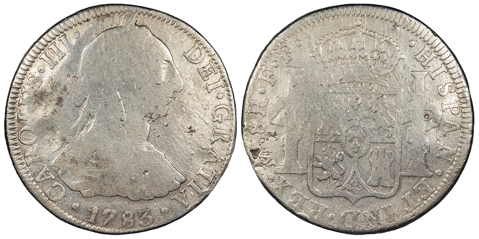 MEXICO Spanish Colonial Charles (Carlos) III 1783-Mo FF 8 Reales Fine -- #WC102379