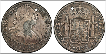 MEXICO Spanish Colonial Charles (Carlos) IV 1807-Mo TH Sheffield Plate? Contemporary Counterfeit 8 Reales VF -- #WC103813
