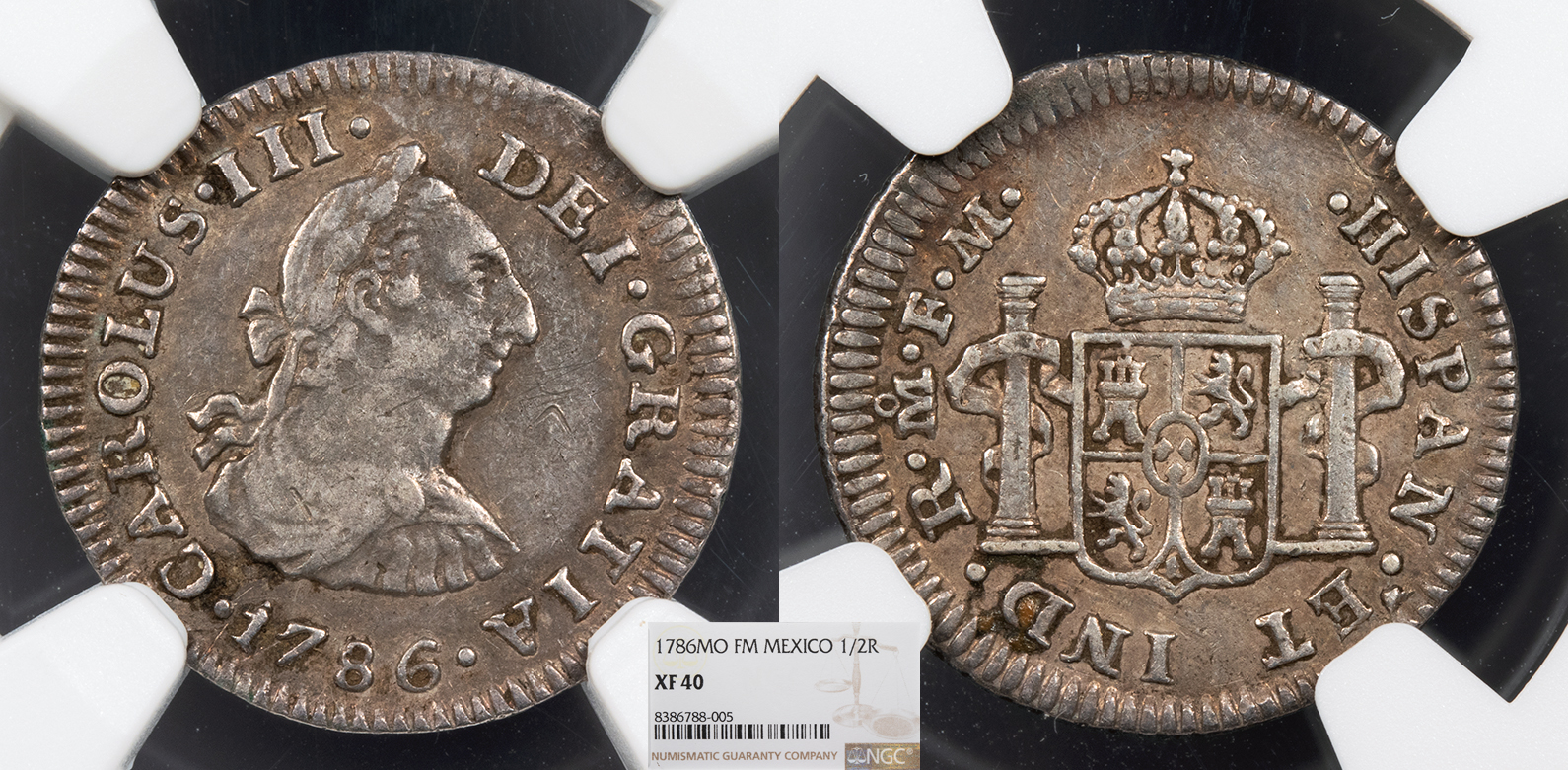 MEXICO Spanish Colonial Carlos (Charles) III 1786-Mo FM 1/2 Real NGC EF-40 -- #WC105769