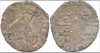 AR Denaro (Denier) 18mm. 0.90g. Small H (debased OTTO monogram). +INPERATOR L-V-C-A crossways around pellet +ENRICVS CNI XI pg. 66, 2 (pl. IV, 27); Metcalf 'Latin East' 9-18 VF. One of the European coin types used heavily by the Crusaders in the Holy Land and associated with such finds.