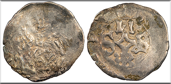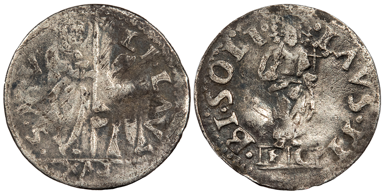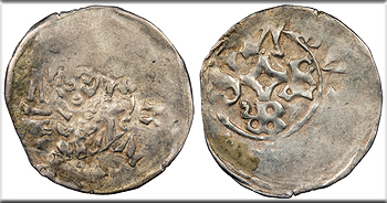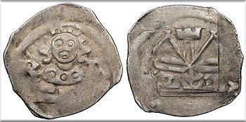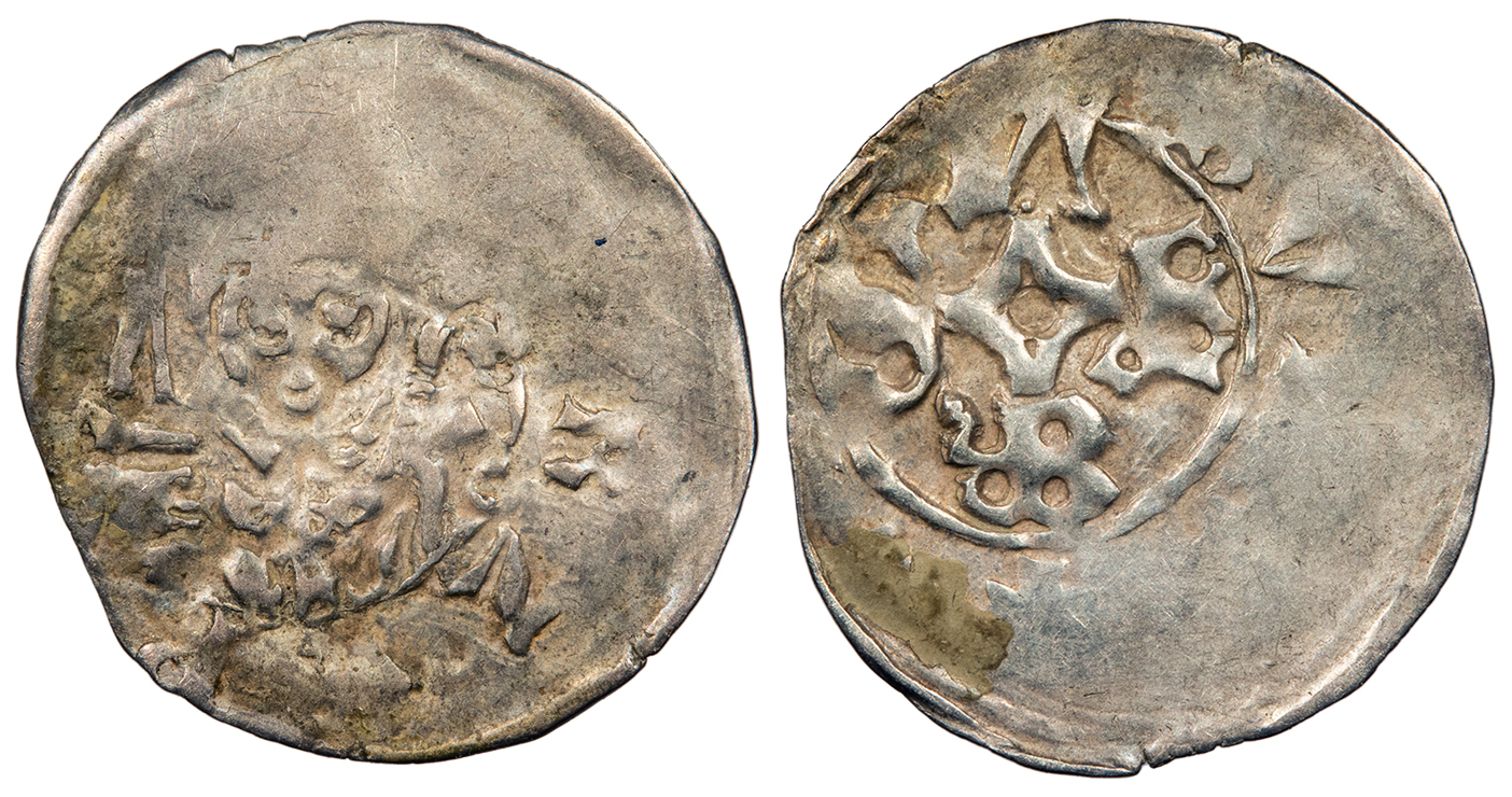 AR Denar / Pfennig 15mm. 0.43g. Half figure of bishop facing, holding sword at left.