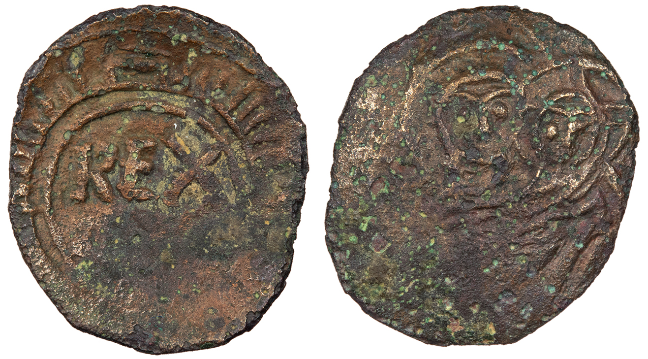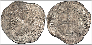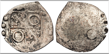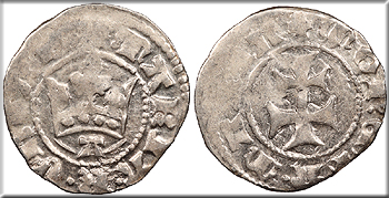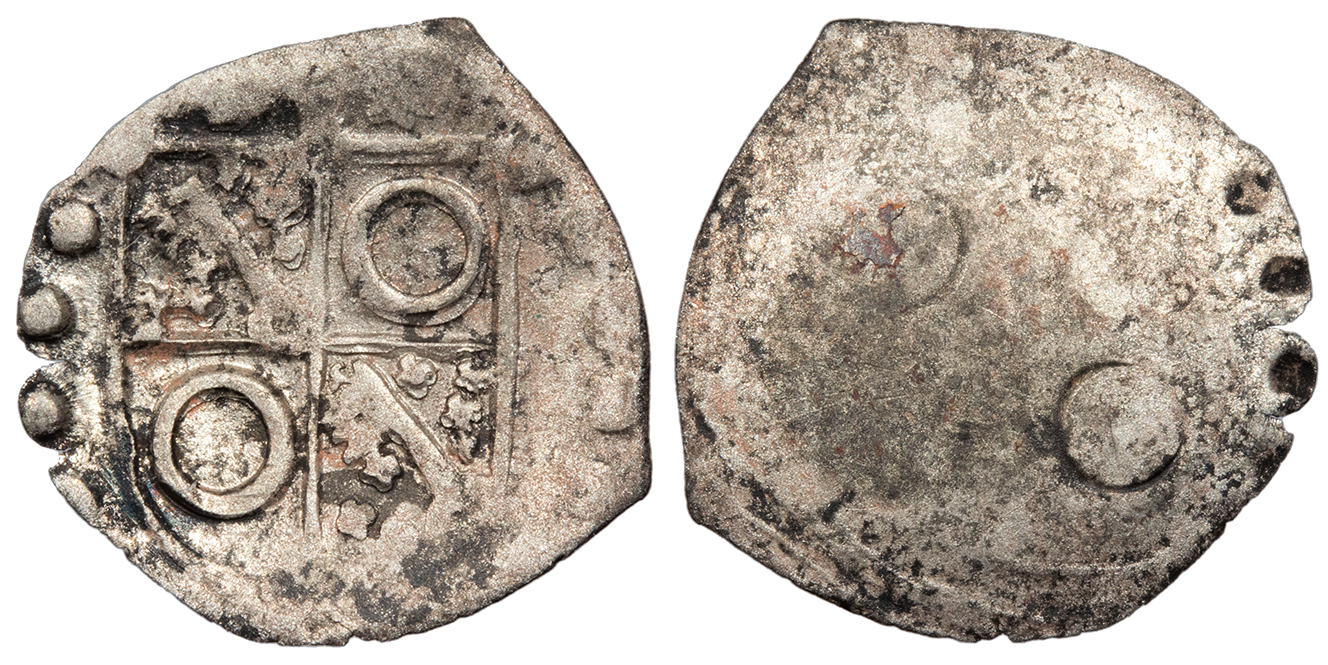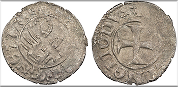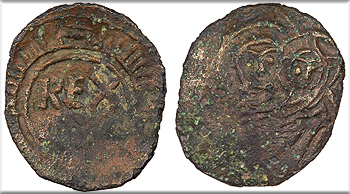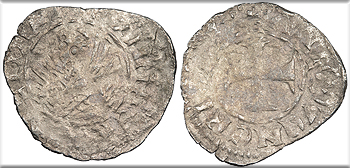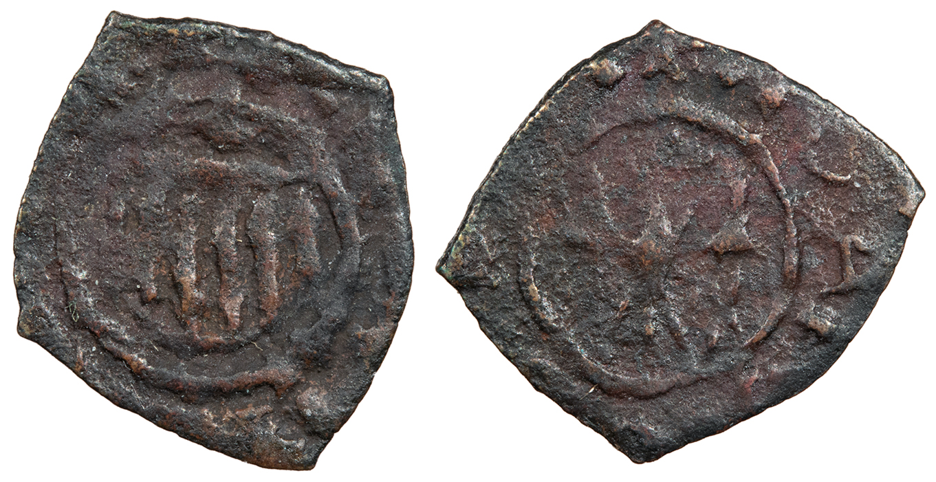Bi Denar (Denaro) 13mm. 0.24g. Arms of Aragon in circle.