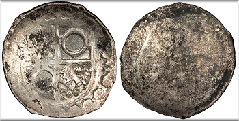 GERMAN STATES Worms Bishopric Theodor von Bettendorf 1552-1580 Struck 1555-1571 Schüsselpfennig ('bowl' Pfennig) AU -- #ME88089