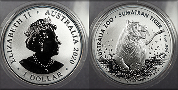 AUSTRALIA 2020 .999 Sumatra Tiger Dollar -- #:WC103740