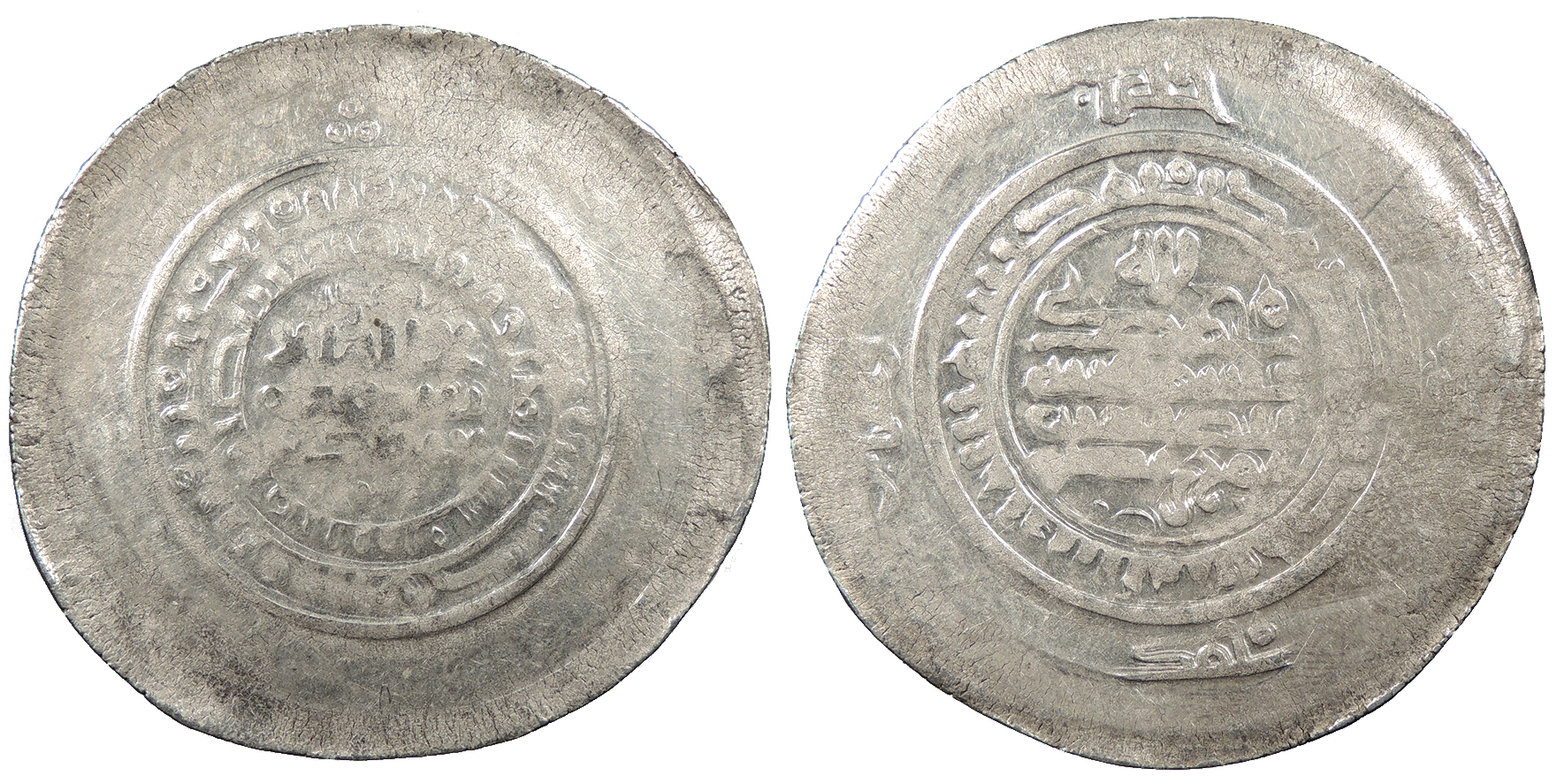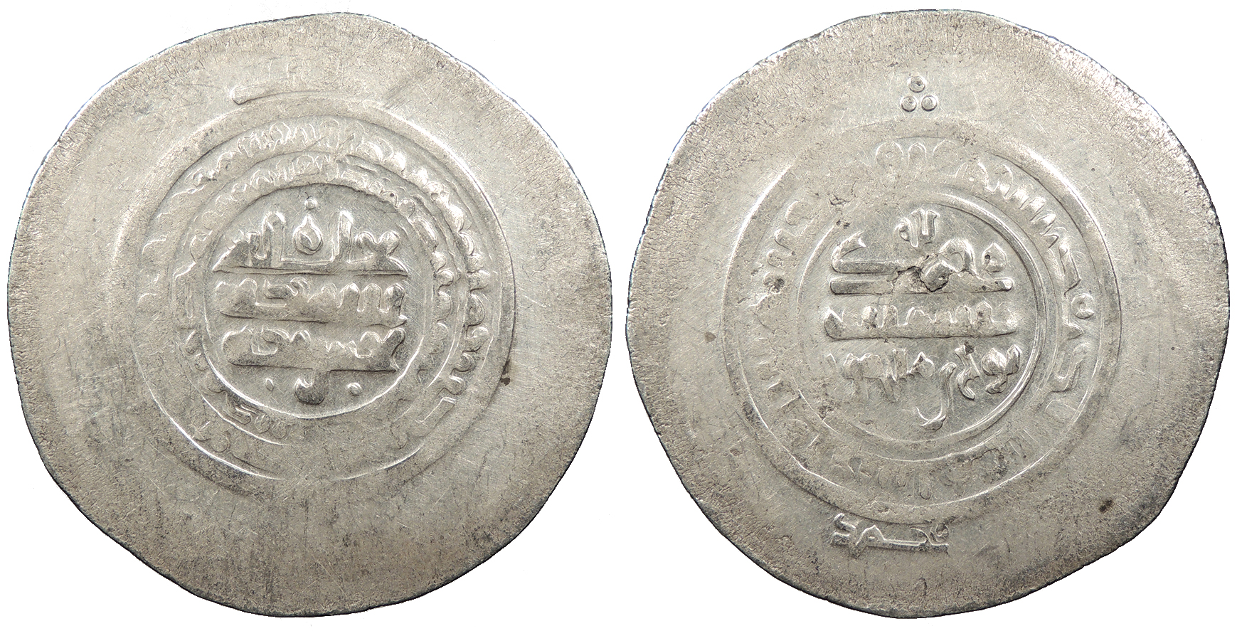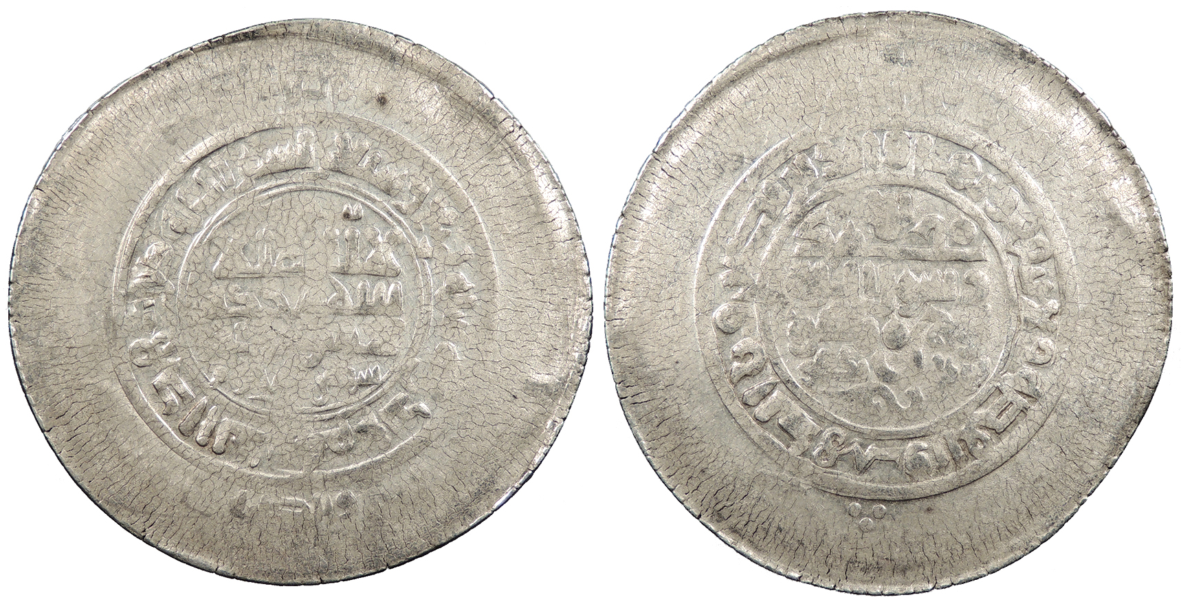 AR Multiple Dirham 45mm. 9.30g. Central legend in three lines; Qur'anic legend in two lines around.