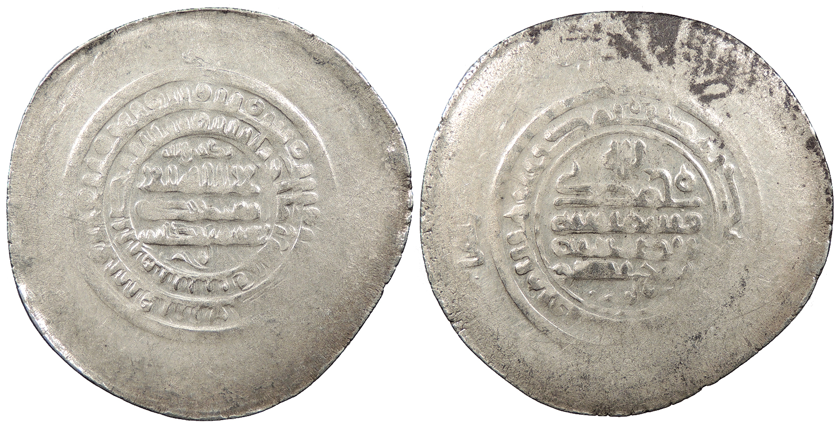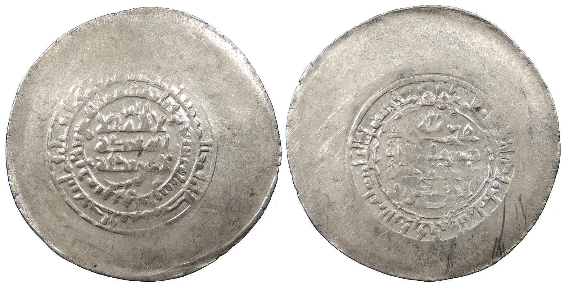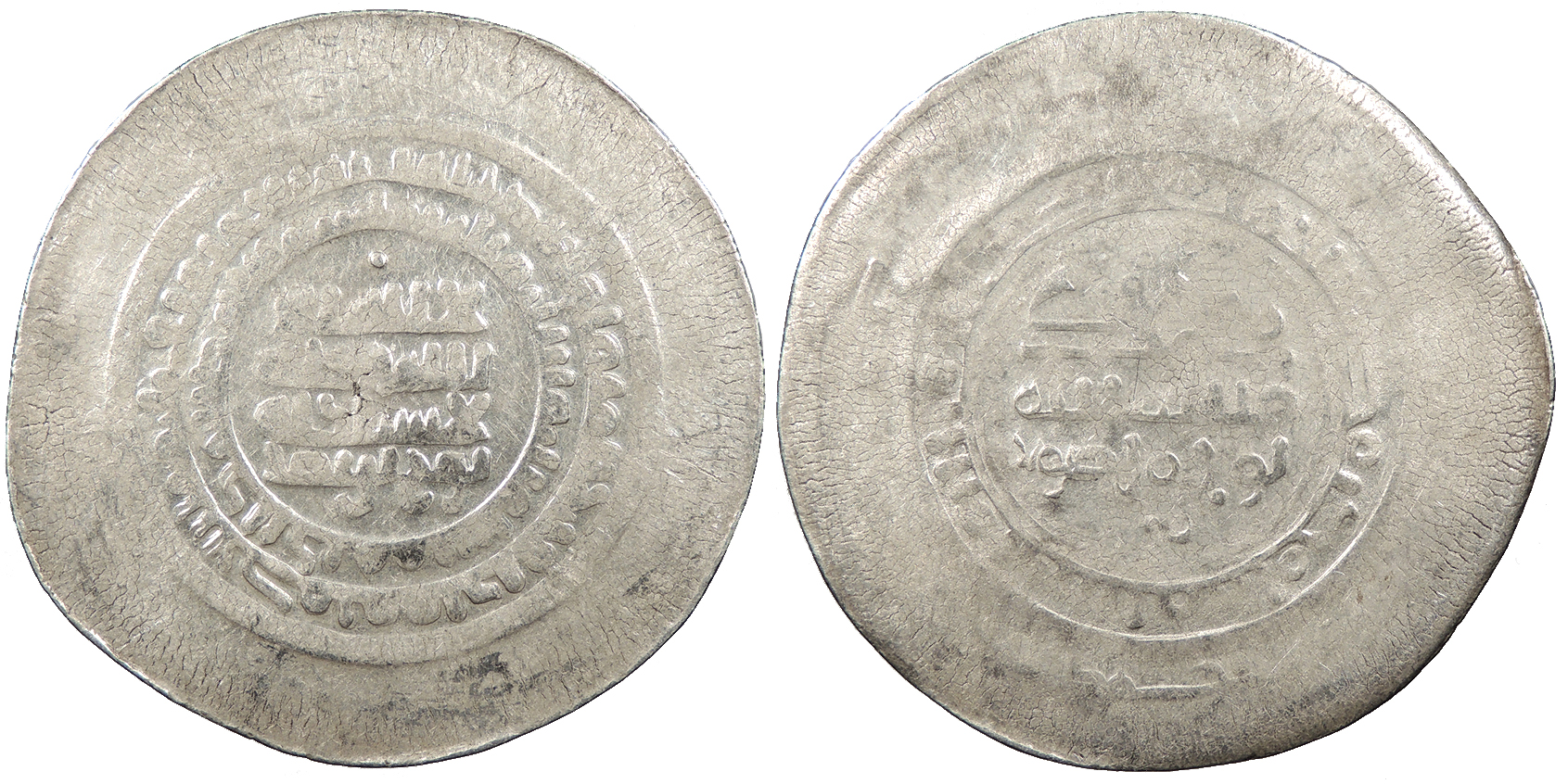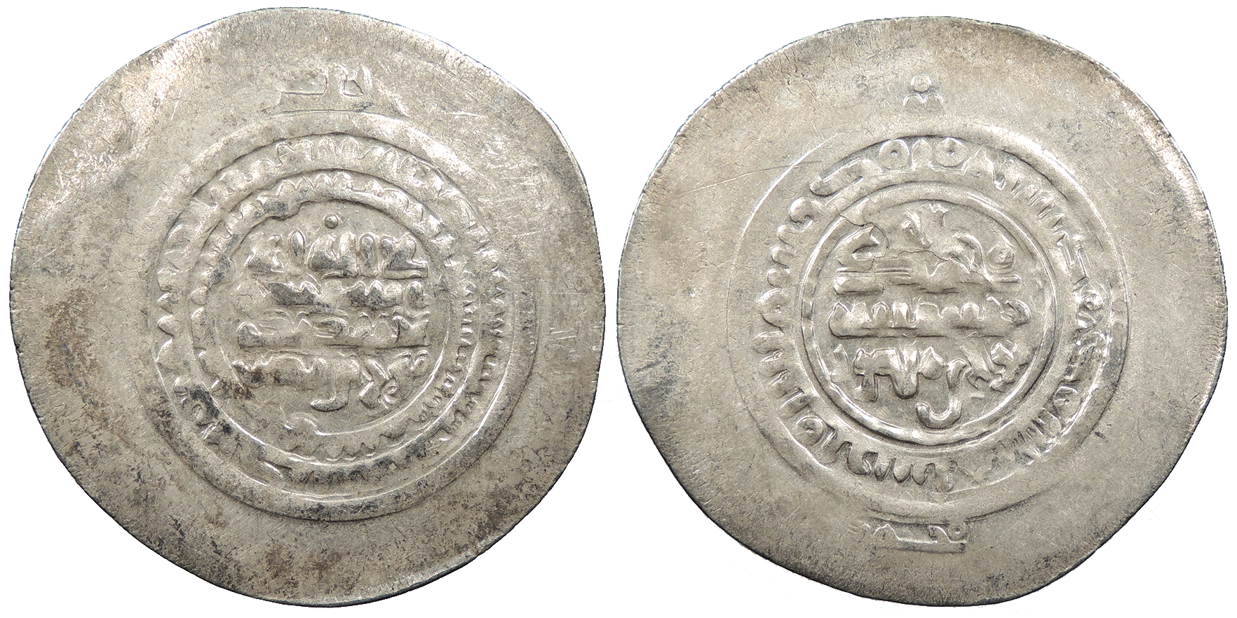 AR Multiple Dirham 45mm. 9.30g. Central legend in three lines; Qur'anic legend in two lines around.