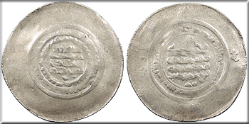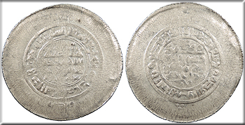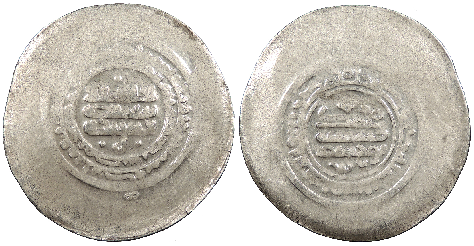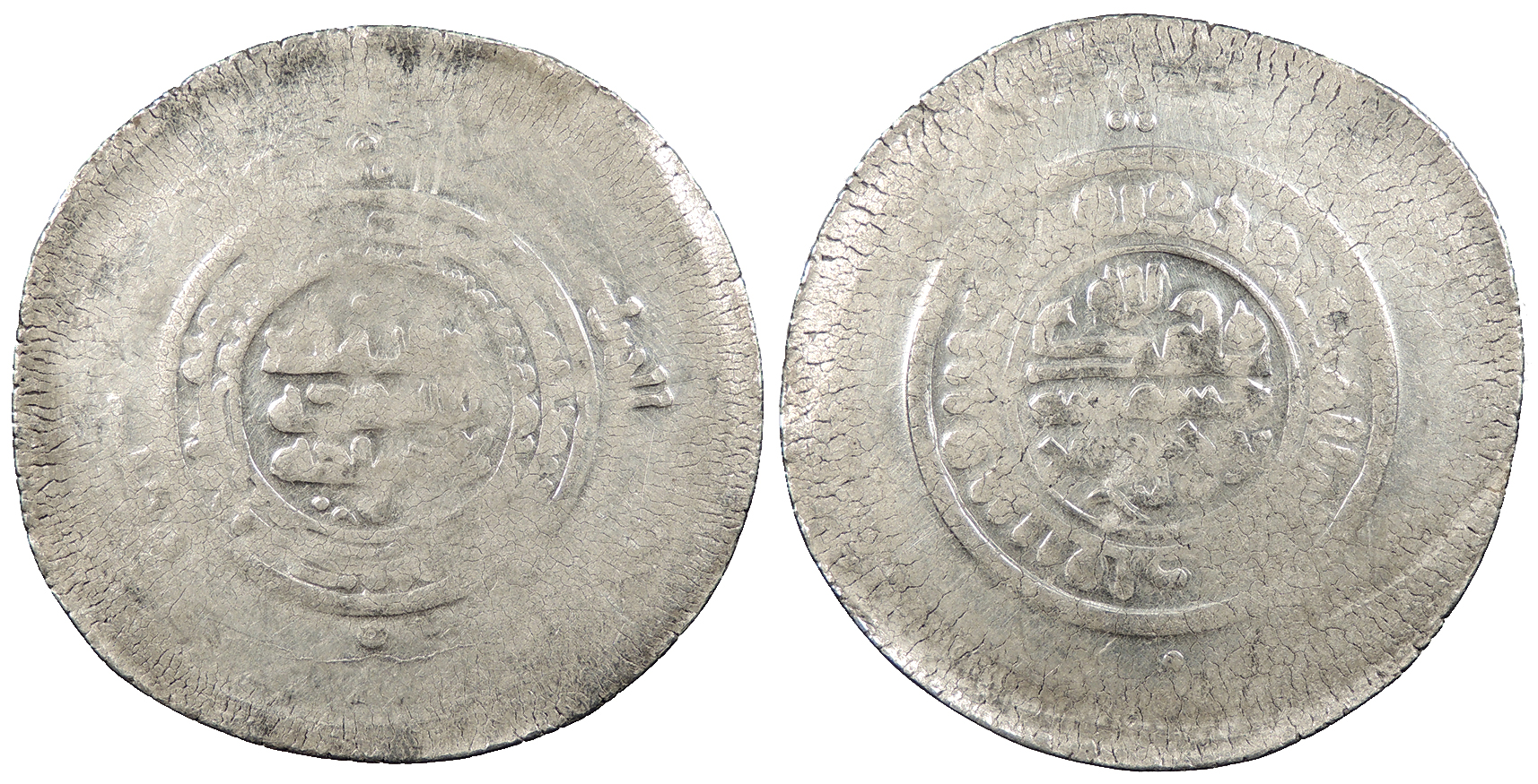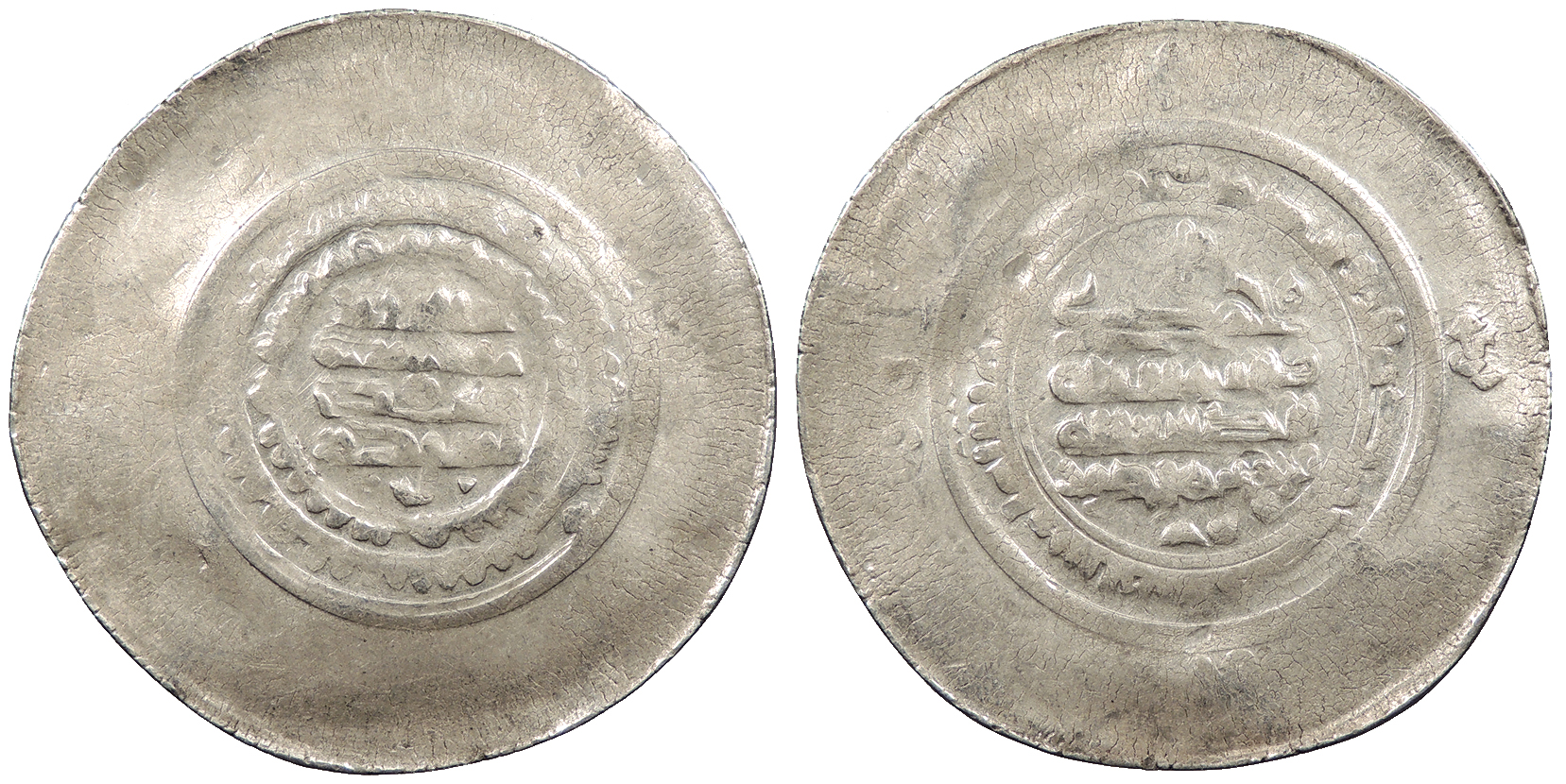 AR Multiple Dirham 45mm. 10.80g. Central legend in three lines; Qur'anic legend in two lines around.