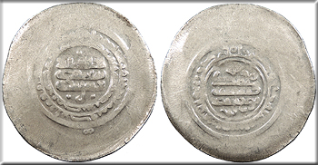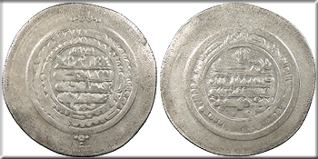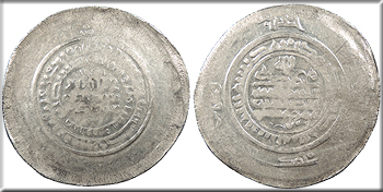 AR Multiple Dirham 43mm. 11.70g. Central legend in three lines; Qur'anic legend in two lines around.