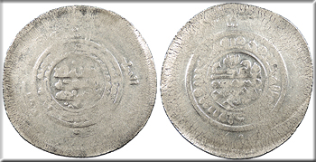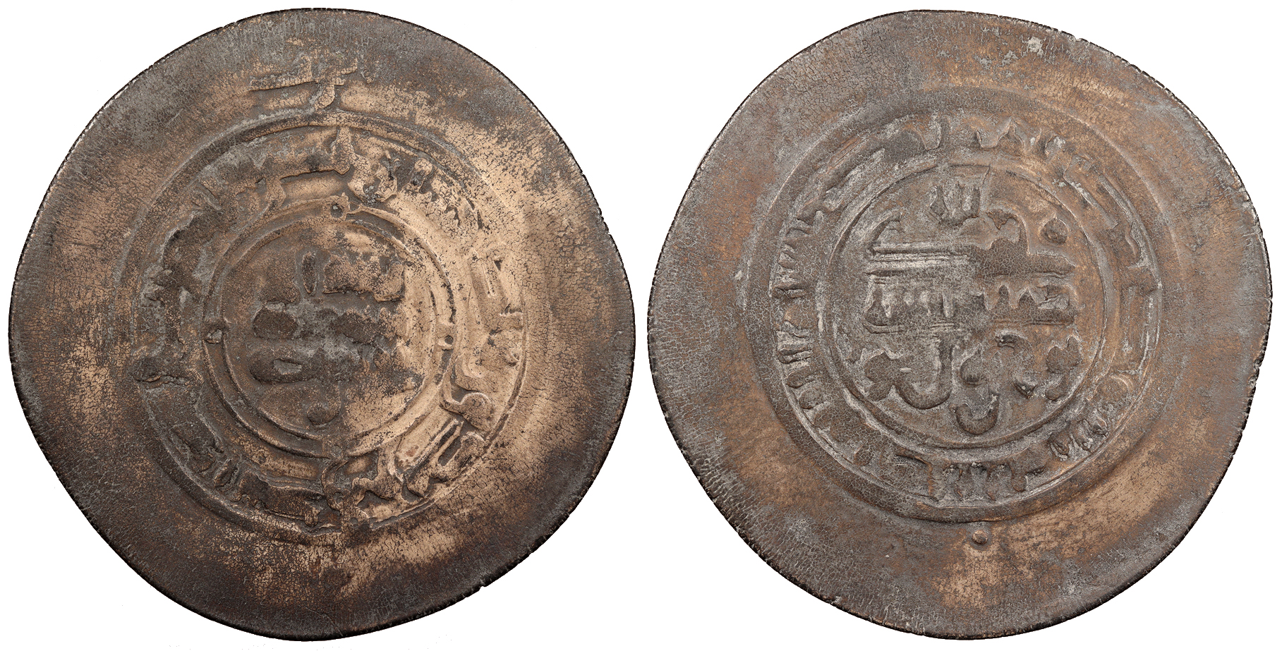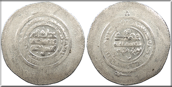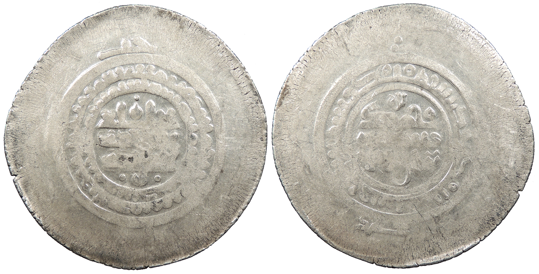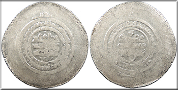 AR Multiple Dirham 46mm. 13.20g. Kurat Badakhshan Mint Central legend in four lines; Qur'anic legend in one line around.