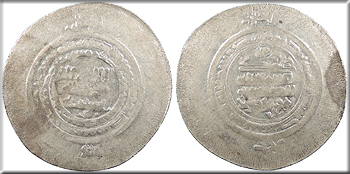 AR Multiple Dirham 45mm. 8.20g. Central legend in three lines; Qur'anic legend in two lines around.