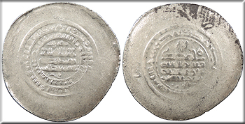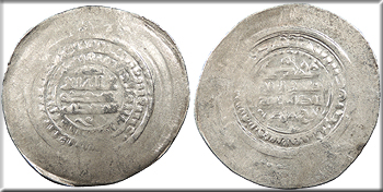 Album-1469W VF. Rare. Lightly toned and lustrous. Nearly fully struck. Typical light porosity and unevenness of strike. Typical double-struck reverse. Some scuffs in margins. This style is indicative of the Warwarliz mint. The reverse legend cites governor Fa'iq, caliph al-Ta'I, and Samanid overlord Nuh ibn Mansur. Listed as rarity 'RR' in Album. Reduced from: $145