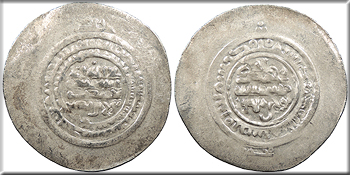 AR Multiple Dirham 45mm. 8.20g. Andaraba Mint AH378 (987/988 A.D.) Central legend in four lines, Samind overlord Nuh bin Mansur named above; Qur'anic legend around.