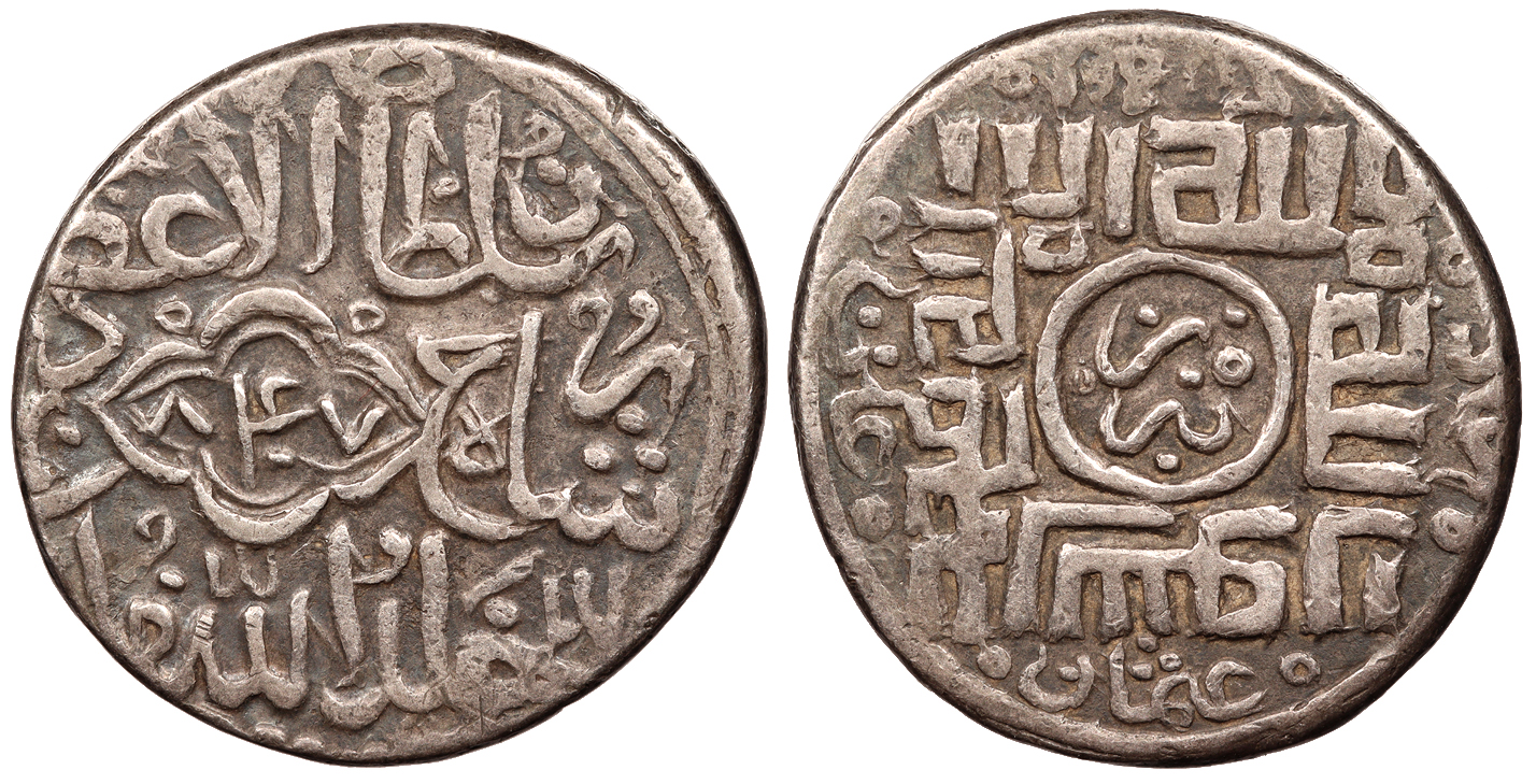 Album-A1440 VF. Rare. Lightly toned with bright underlying lustre. Interesting style on reverse. Typical light porosity and slight unevenness of strike. A few faint scuffs near edges. The Qur'anic legend on the reverse is a warning for those who bury and hoard gold and silver. Noted as 'rare' in Album. Reduced from: $120