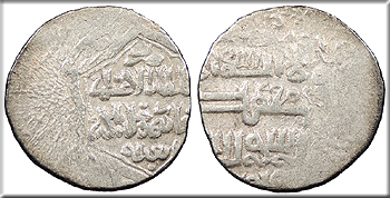 Album 547 Near VF. Rare. Toned. Slight abrasion to corner. Album lists the half dirham of Abd al-Haqq as 'RR' rarity.