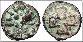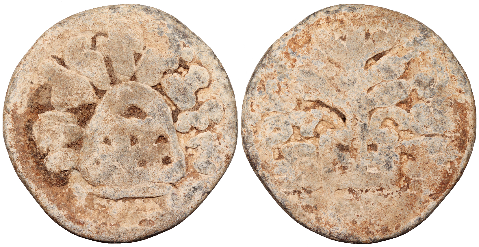 Pieper 173; MACW 4609 Fine. Very rare. Dark brown patina. Very heavy. Porous, as can be expected. A decent example of a rare type. Few examples on the market, of which this one is at the highest end of the weight range. Nicely shaped and less irregular than most.
