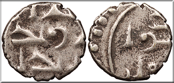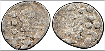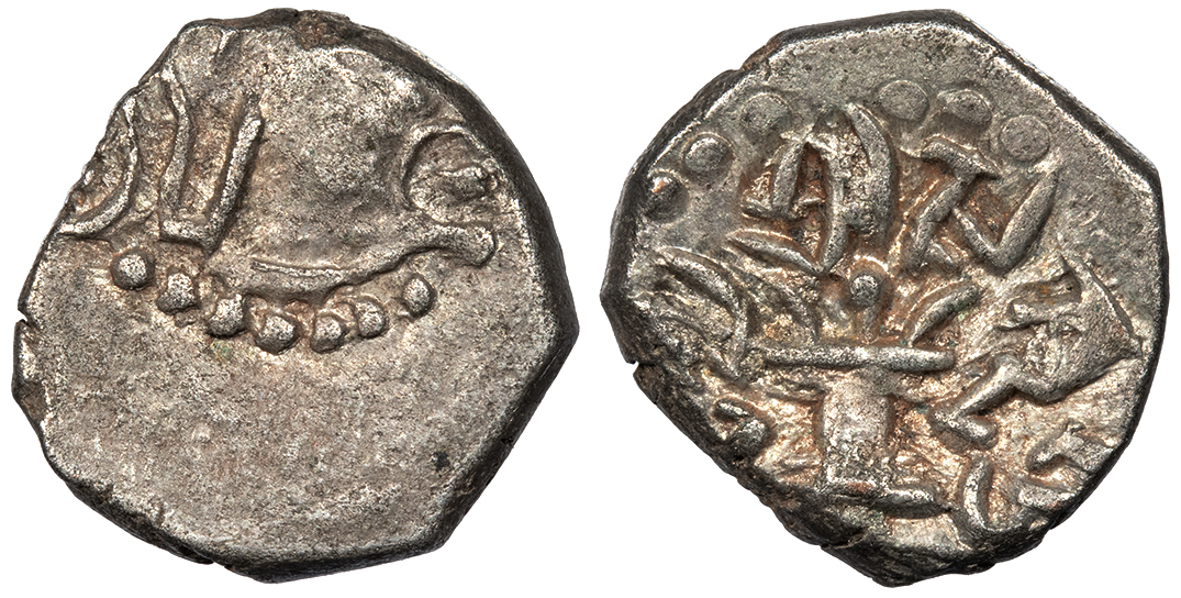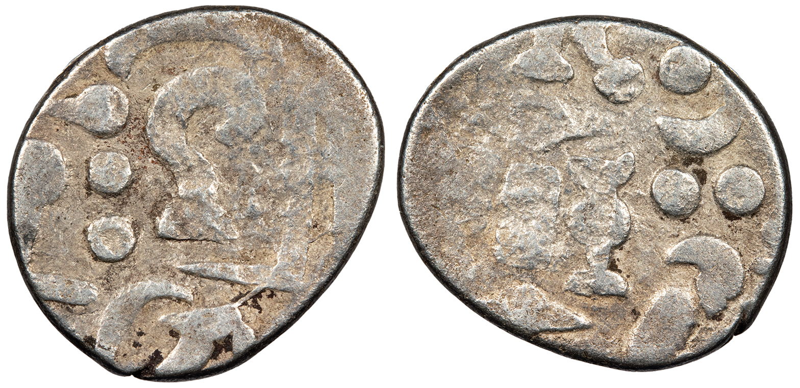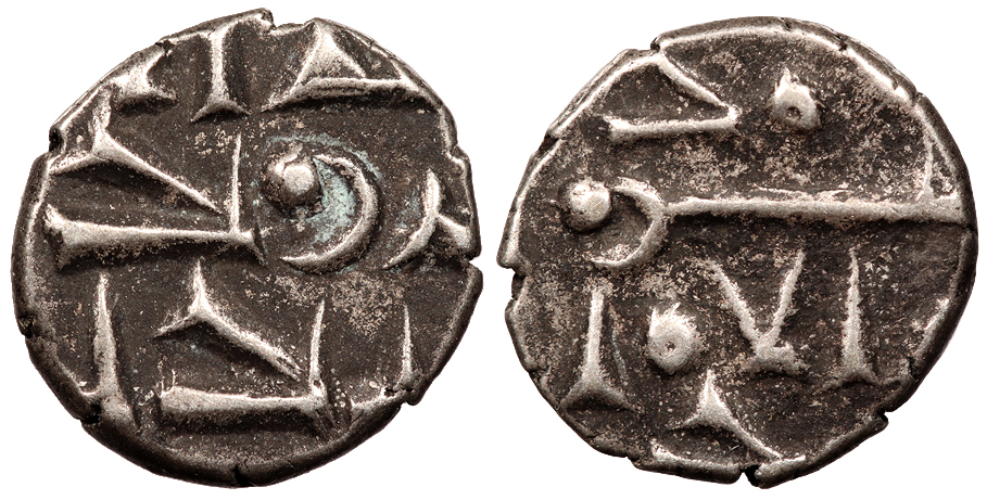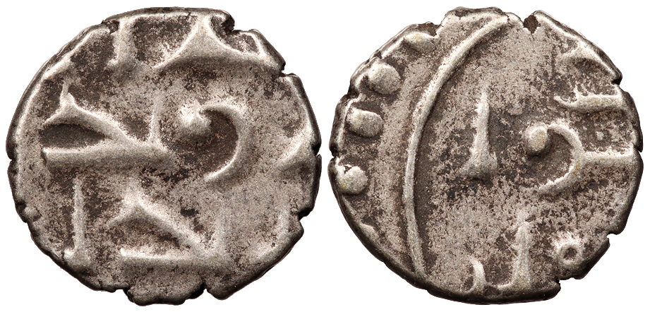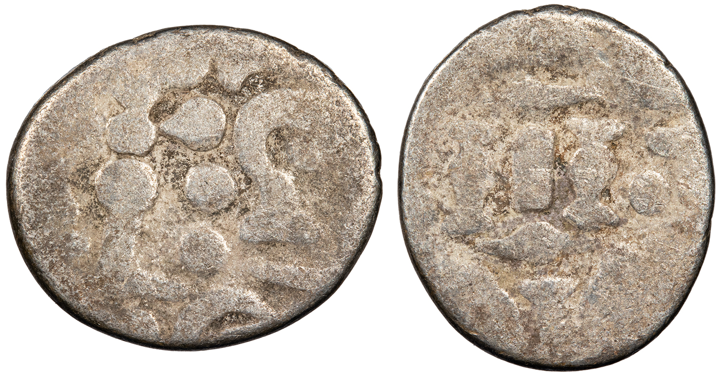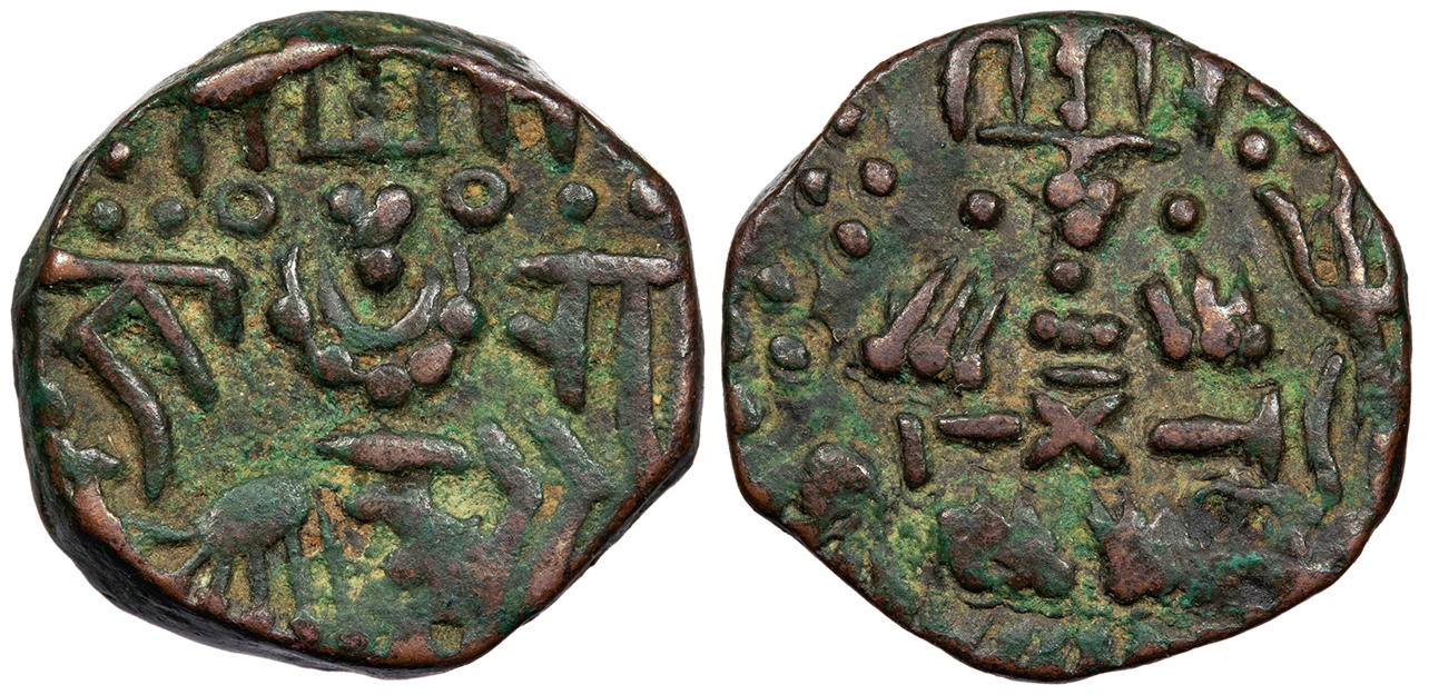 cf. Mitchiner 398; Numista?59290 Fine. Lightly toned. Light porosity. A crude Northern Indian issue seldom offered.