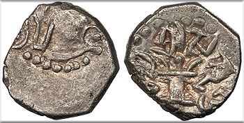 Altar with flames (or Garuda?); Brahmi legend around.